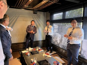 最後に懇親会を行わせていただいたお店の前で社員一同