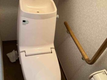 既存の手洗い付きトイレを、タンクレストイレ「サティスS」へ交換しました。