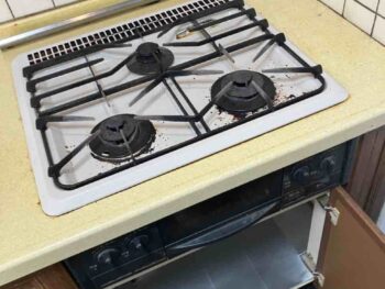 現地調査をいたしましたところ、レンジフードの経年劣化が確認されました。今は異常がなくても、いつ調子が悪くなってもおかしくない状態です。 セット割が適用されますので、ガスコンロも交換をおすすめしました。 |