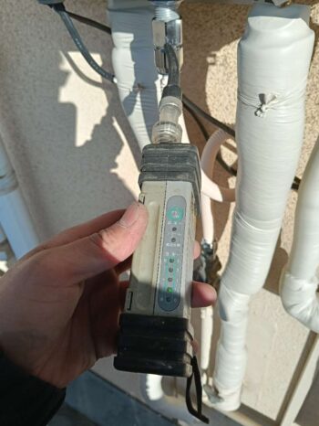 ガス漏れがないか、可燃性ガス探知器でチェックします