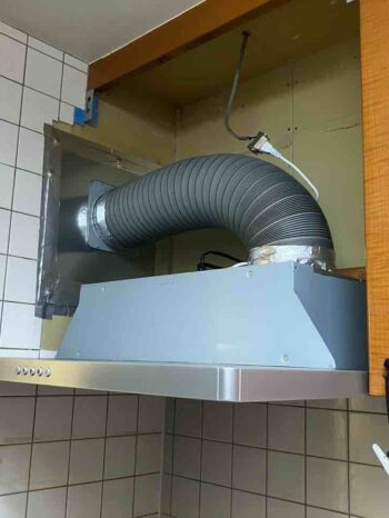 新しいレンジフードを設置中