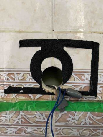お風呂場のリモコンを撤去。これから付着したコーキングなどを掃除し、きれいにします