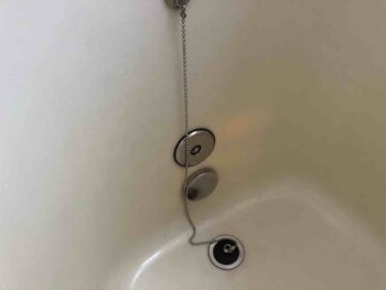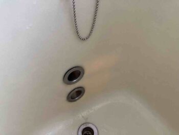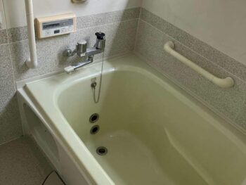 浴槽に2つ穴が。浴槽隣接据置型の特徴です。