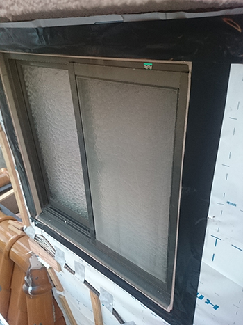 | 続いてサッシ周りに見切りを取り付けます。 シーリングなどで済ませた場合は、シール材の劣化から雨漏りを引き起こす可能性もあるため、見切りを取り付けることが確実なのです。 |
