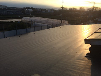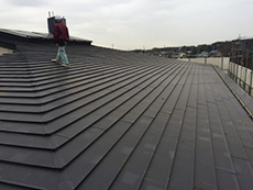 | 広い屋根の上に、均一に屋根材を配置いたしました。 |