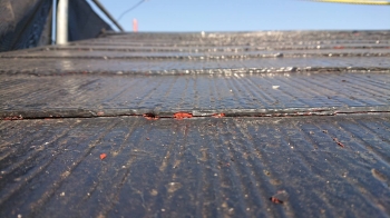 以前に屋根の塗装を行った際に縁切りの処理をしていなかった為に、屋根材の間が詰まっておりました。 |
