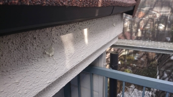 | 仕上げに軒樋の交換に移ります。 まずは既存軒樋を撤去し、ビス跡を埋めます。 |