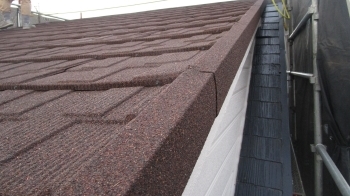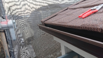 | 使用商材 | ・屋根材...デクラ セネター(色:ティーク) ・軒樋...パナソニック PC50 |