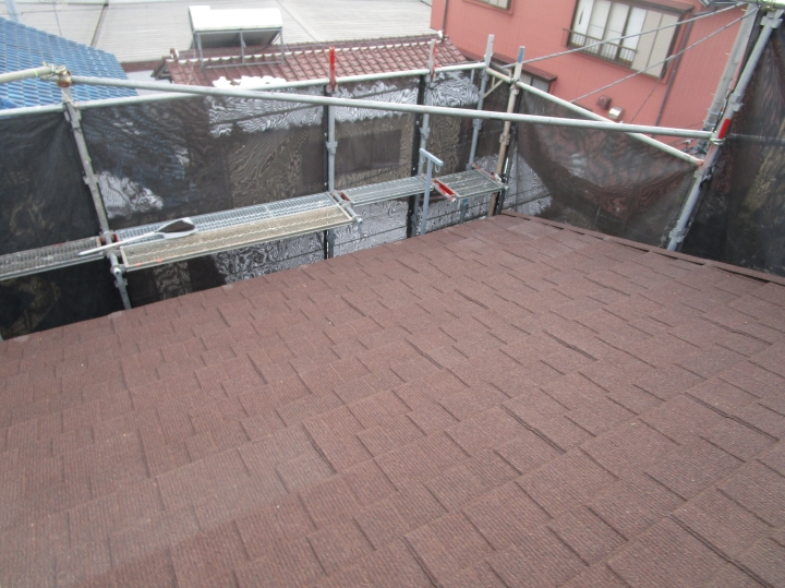 | こちらが施工後のT様邸の屋根です。 セネターという超軽量ながらも高機能の金属屋根材で既存屋根材の上からカバーすることで、余計な撤去費などもかかることなくお得に屋根のリフォームが完了いたしました。 |