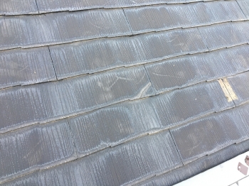 | こちらは下屋根を撮影したお写真です。 築18年ということもあり、相応に傷みが見られます。 |