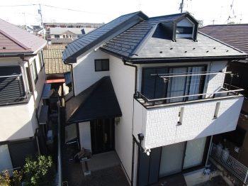 | 下屋根も併せてカバー工法にてリフォームされました。交換したブラックの雨樋も全体の印象を引き締めております。 |